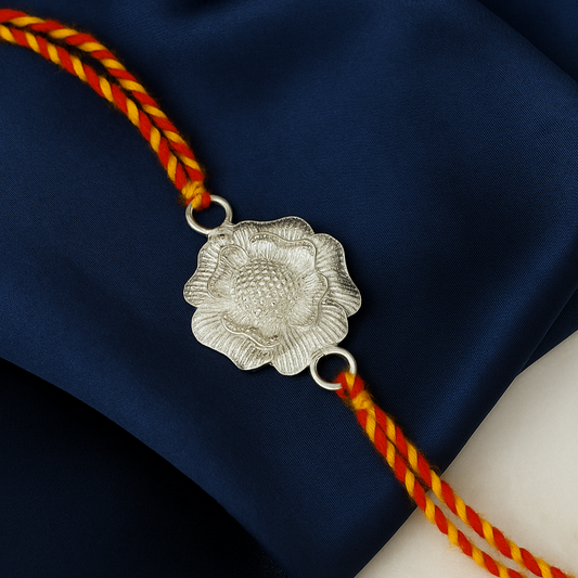 Premium 925 Pure Silver Rakhi with Traditional Thread – Radiant Blossom