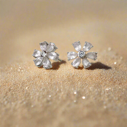 925 Pure Silver Earrings with Natural Rose Quartz