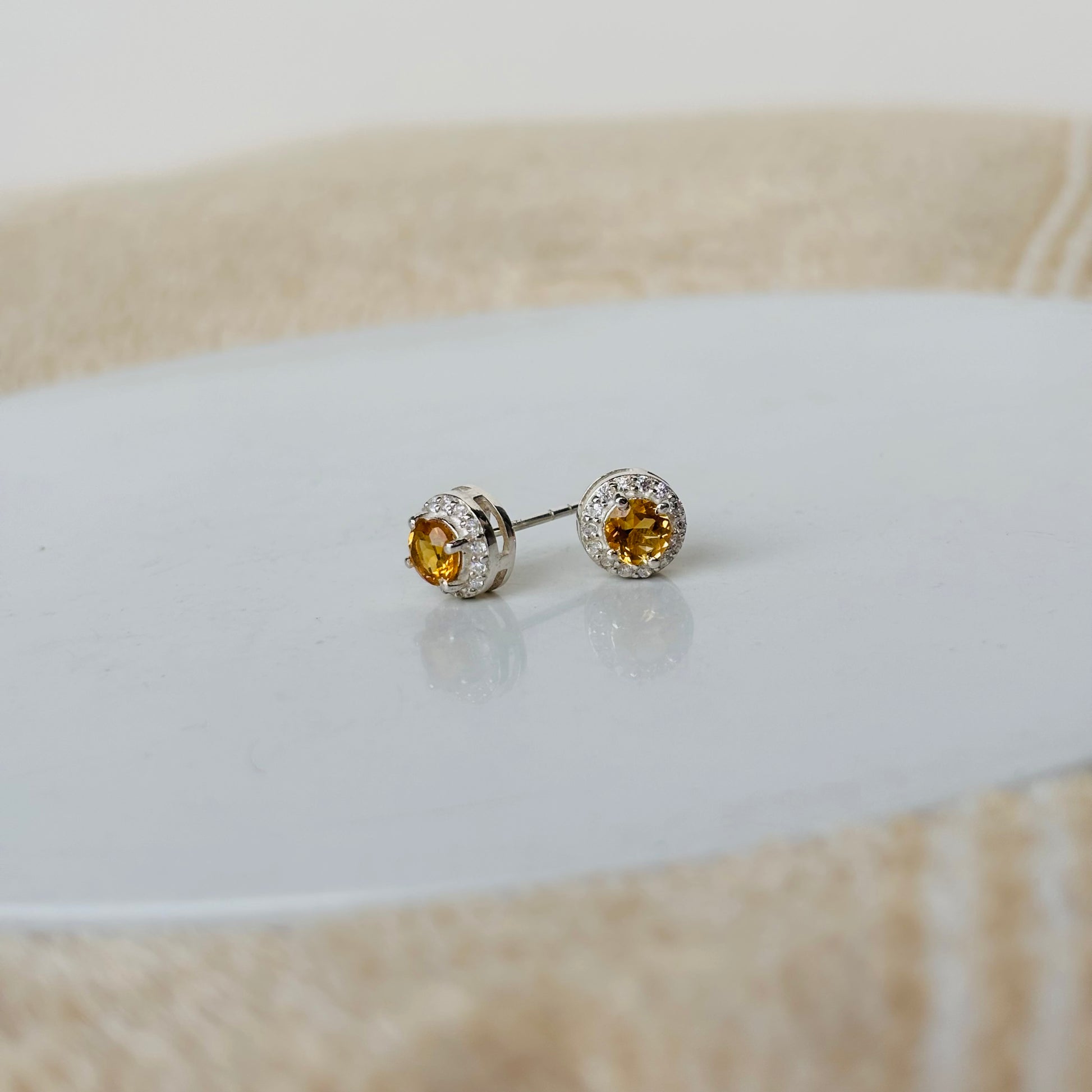 Brighten your look with the warm golden glow of natural citrine. Set in sterling silver, these round cut earrings bring elegance and positivity to any outfit. A timeless piece perfect for everyday wear or special occasions.