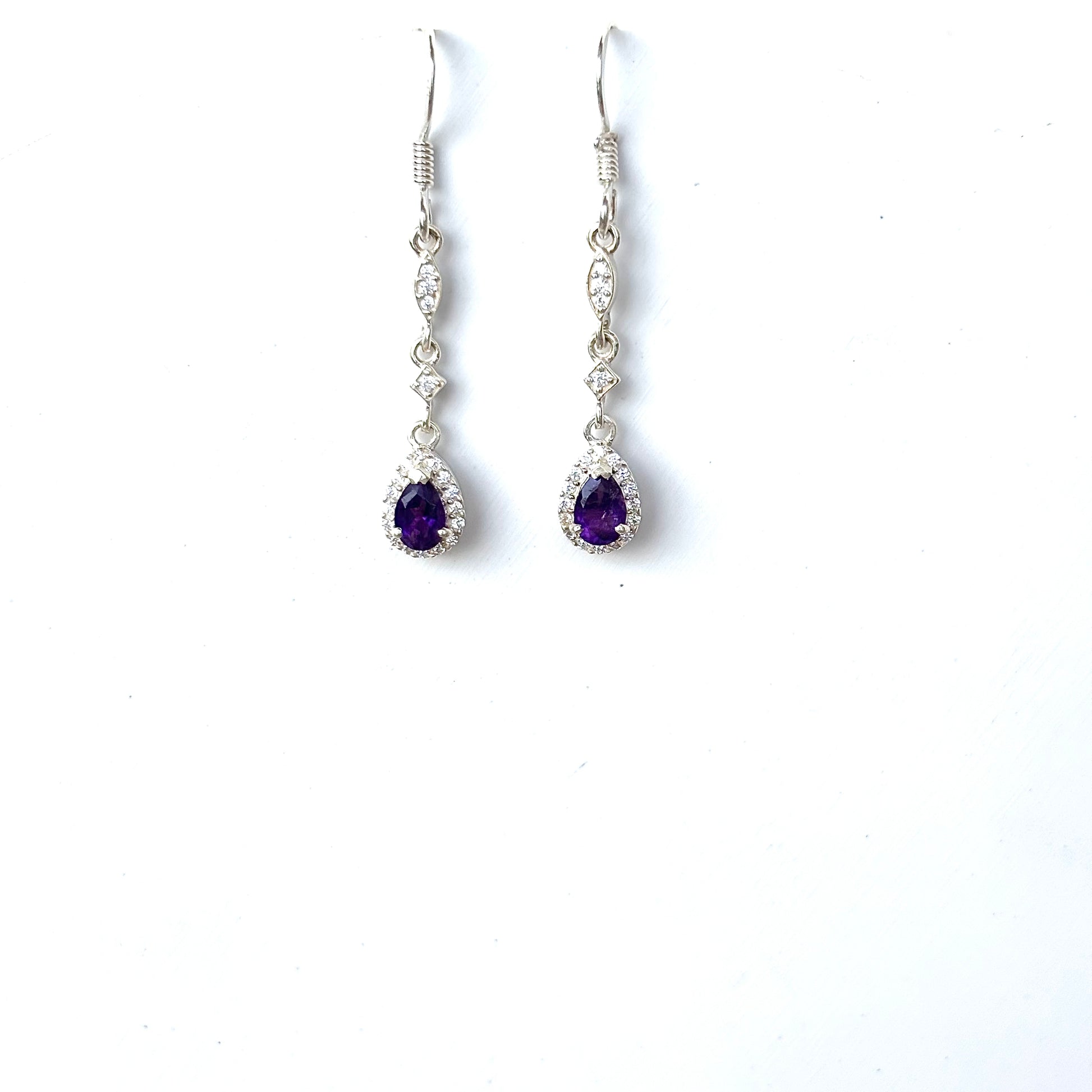 925 Pure Silver Natural Pear Amethyst Drop Earrings